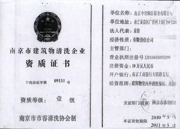 南京保潔公司注冊資金10萬元,是江蘇省家庭服務(wù)協(xié)會會員單位,江蘇省家政服務(wù)業(yè)分類執(zhí)行標(biāo)準(zhǔn)起草制定單位,先后被評為江蘇誠信服務(wù)先進(jìn)單位、南京是家政服務(wù)定點(diǎn)培訓(xùn)單位、南京市十佳建筑物清洗企業(yè)、南京市誠信示范單位、南京市鼓樓區(qū)三信三優(yōu)單位。董事長康朋是江蘇省家庭服務(wù)業(yè)協(xié)會副會長、江蘇省家政服務(wù)分類執(zhí)行標(biāo)準(zhǔn)主要起草人。